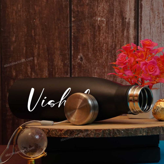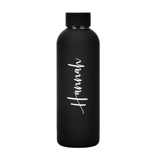 Personalized Black Rubber Matte Insulated Bottle β Premium Stainless Steel, Double-Walled, 500ml, Custom Name Print