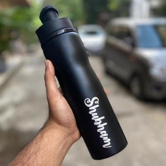 Personalized Black Rubber Matte Insulated Bottle β Premium Stainless Steel, Double-Walled, 500ml, Custom Name Print