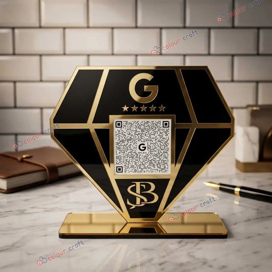 Custom Google Review QR Code Stand for Jewellery Shop - Luxury Diamond Shape Acrylic Review Display Sign