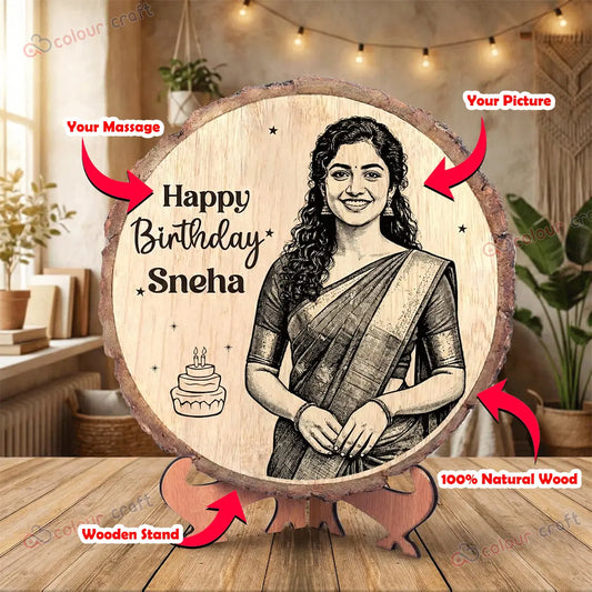 Custom Wood Slice Gift - Custom Wood Slice Picture Plaque on Stand
