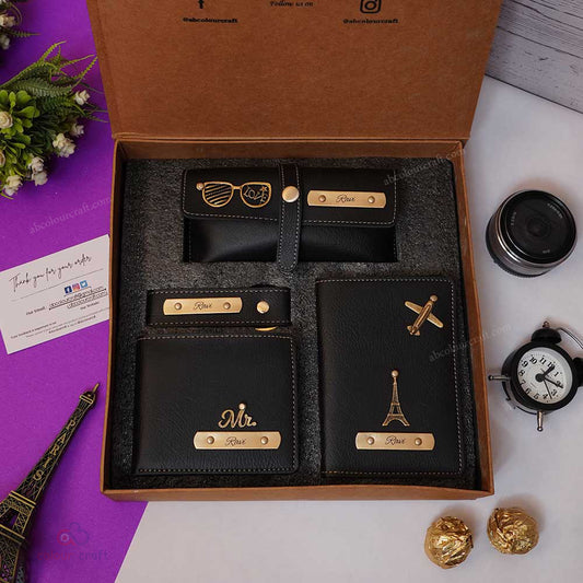 Premium Leather Wallet & Travel Combo Gift Set β Personalized with Name & Charms