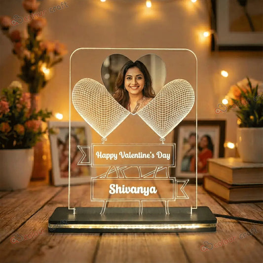 Personalized 3D Heart Balloon Photo Lamp with Name / Custom Acrylic LED Night Light for Birthday, Anniversary & Valentine's Day Gift