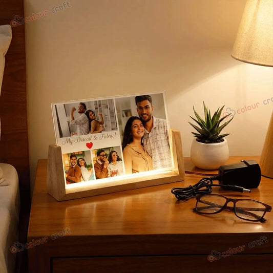 Personalized LED Photo Frame with Wooden Base / 3D Acrylic LED Frame