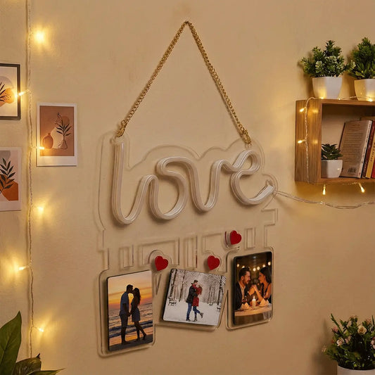 Custom Love Neon Light Photo Frame - Romantic Gift for Couples, Bedroom & Home Decor