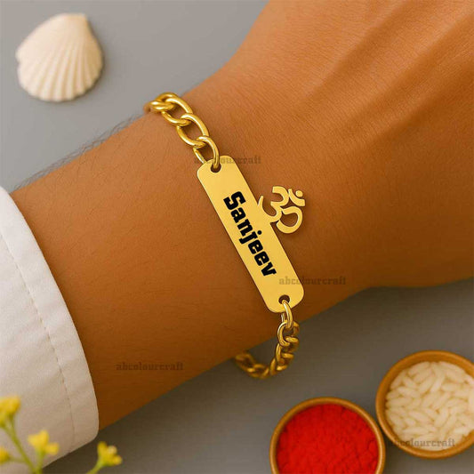 Customized Om Rakhi with Name – Brass Personalized Rakhi for Brother – Elegant Hindu Raksha Bandhan Gift
