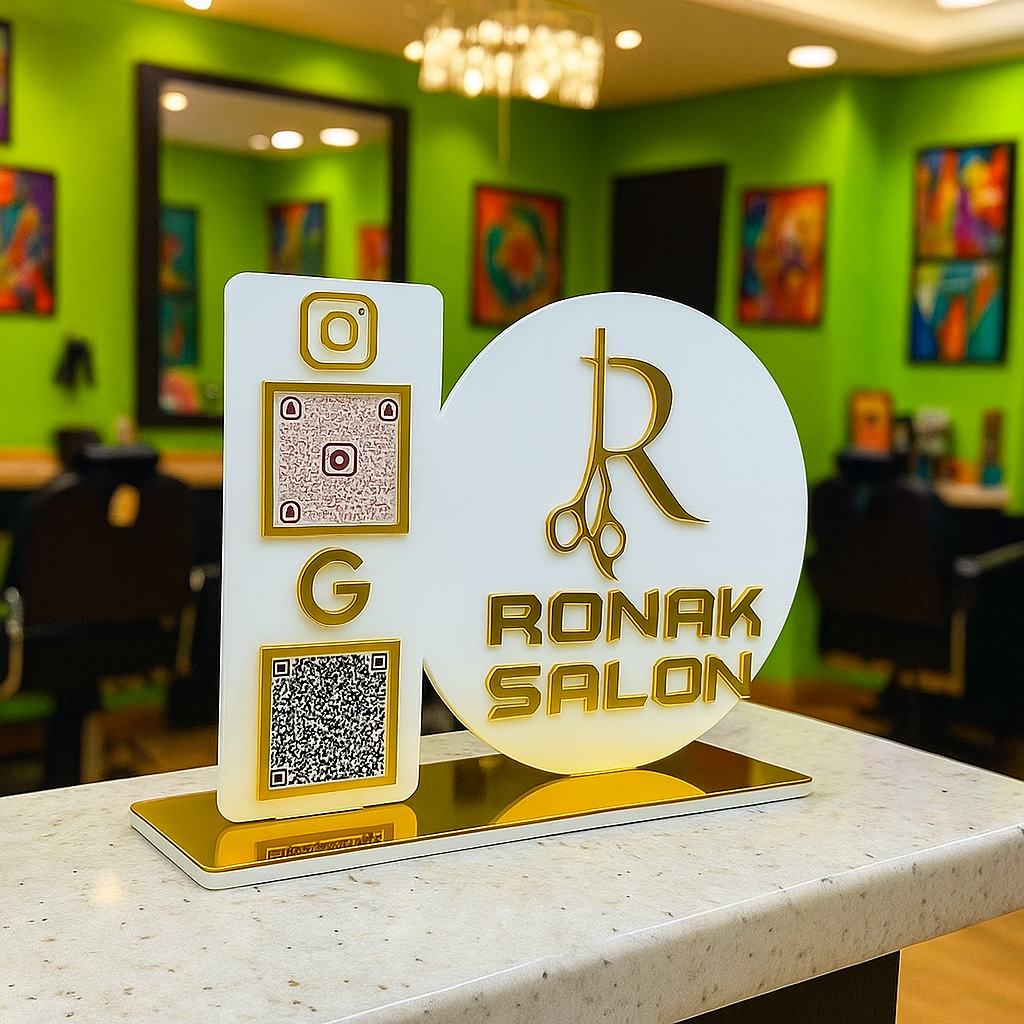 Upgrade your counter with this premium acrylic QR standy. Personalize it with your business logo and multiple QR codes for payments, reviews, or social media.