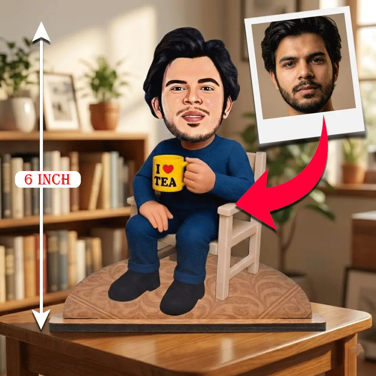 Fully Personalized: Just upload a front-facing photo, and we convert the face into a fun, realistic caricature while keeping the "Tea Lover" body theme.
